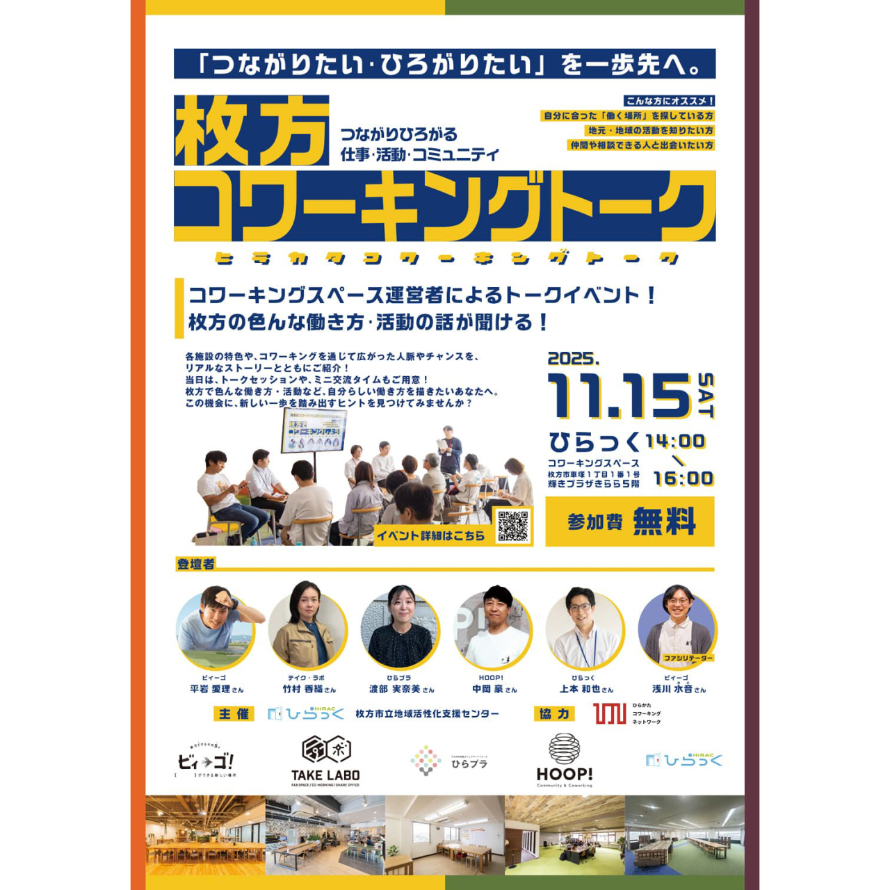 「枚方コワーキングトーク 〜つながりひろがる、仕事・活動・コミュニティ〜」 11/15開催