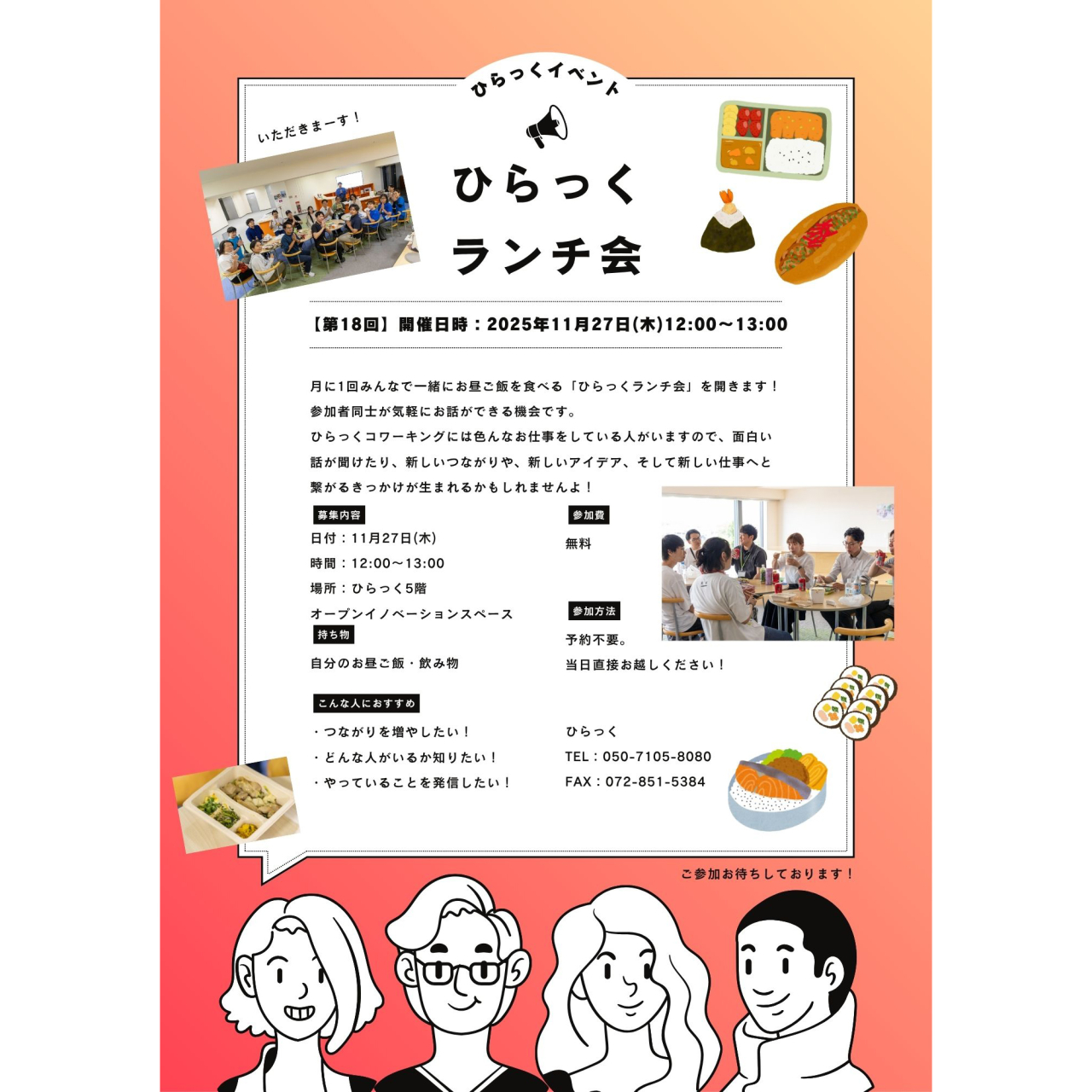 ランチタイムを通じて、コワーキングスペースの利用者同士の会話のきっかけ作りをします。