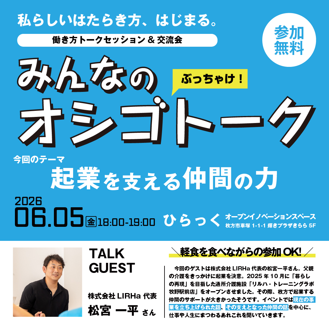 関西一創業しやすい街枚方を目指して