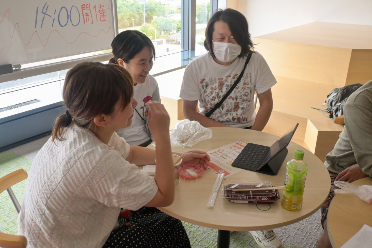 各々で、お弁当やサンドイッチなどの昼食を持ってきていただいて、楽しくおしゃべりをしています。