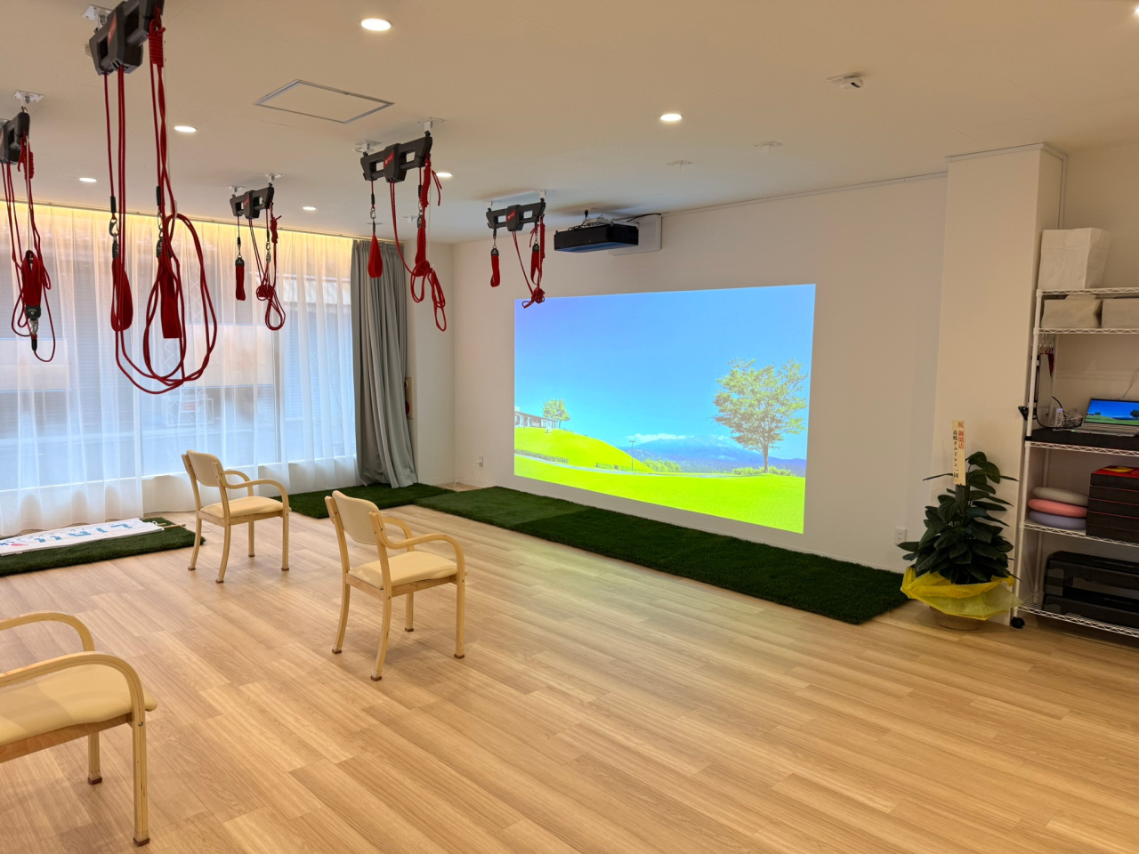 壁一面に大きな映像を写して、臨場感あるシーンをしながらリハビリをしてもらえます。