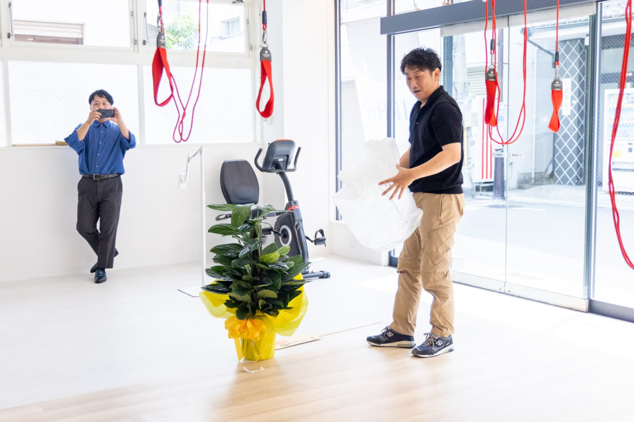 お披露目ではみんなで日よけ幕の取り付けや、ひらっくスタッフ高崎のアイデアで全員青い服を来て参加していたり、最後には観葉植物をプレゼントする場面があったりと、松宮さんの大きなスタートに向けてお祝いムードで和やかでした。