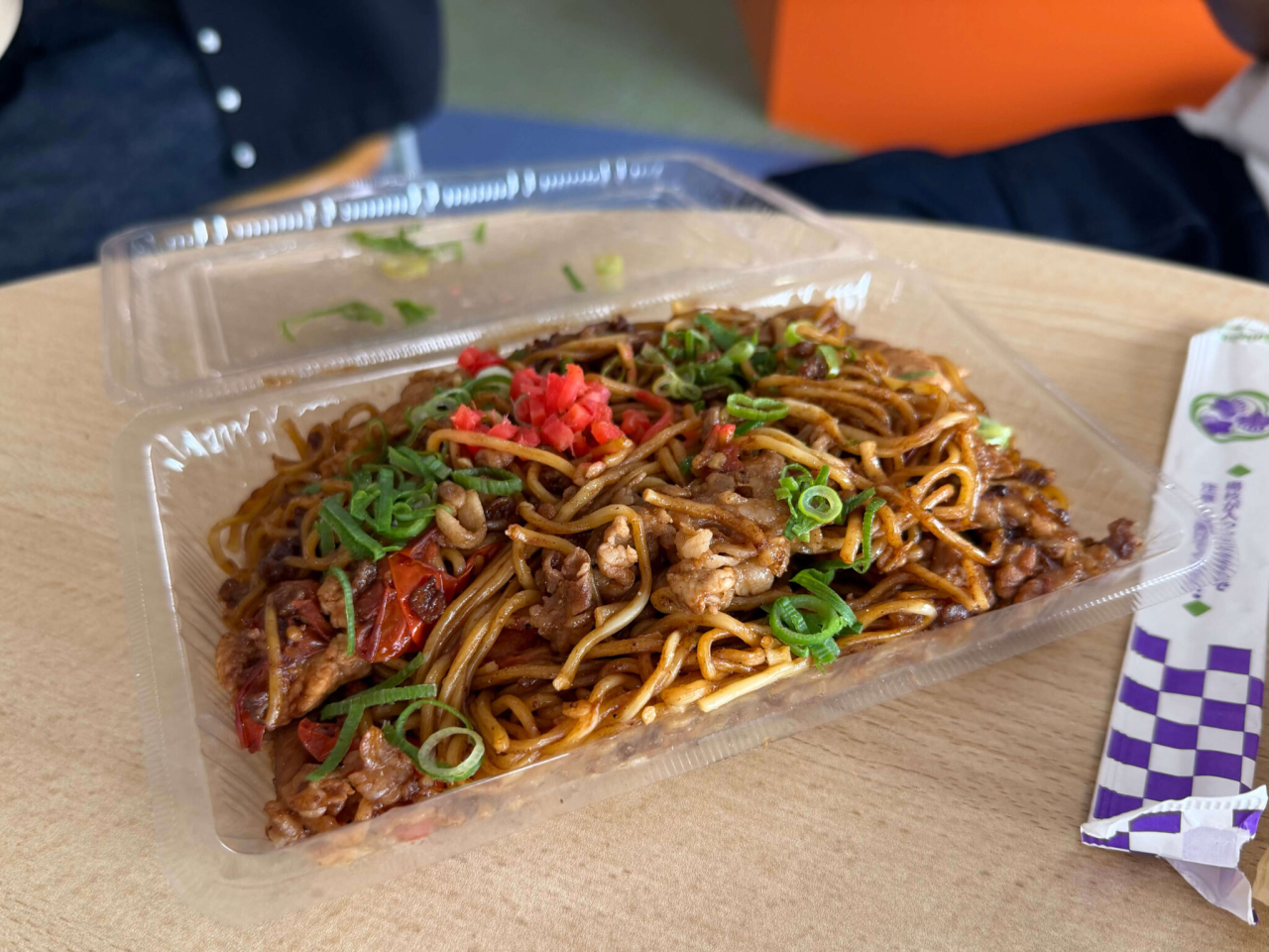 今回は、「広島風」焼きそばを作って来られた方がおられました。広島の某有名ソースメーカーから習った味を再現したものだそうです。魚粉と天かすを入れてソースの水分がなくなるまで焼くのが特徴。ソースの水分を吸った天かすがミンチのようになるそうです。美味しそう!