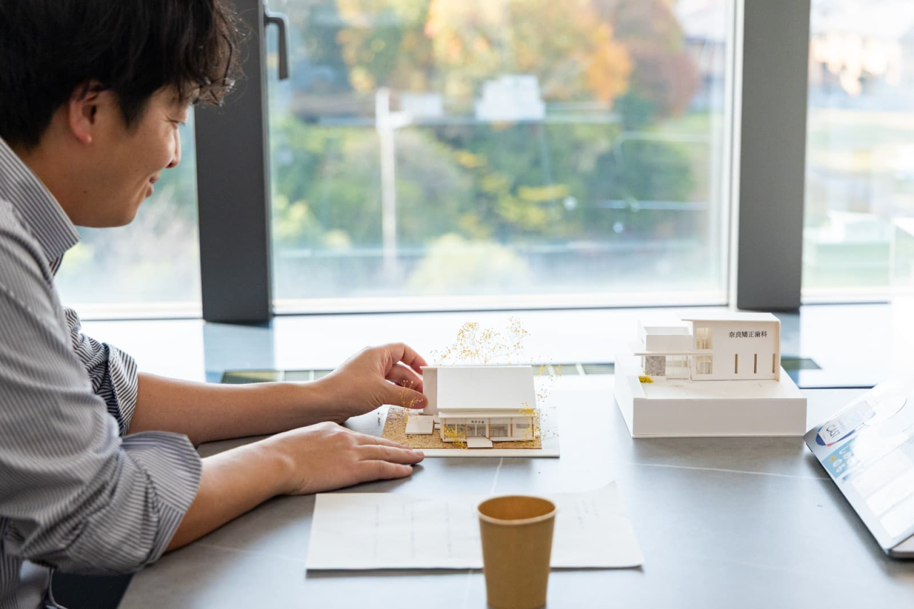 建築分野では最近、クリニックの設計依頼が増えていますね。中規模なクリニックが多く、基本的には私一人で担当しています。一般的な家も設計しています。