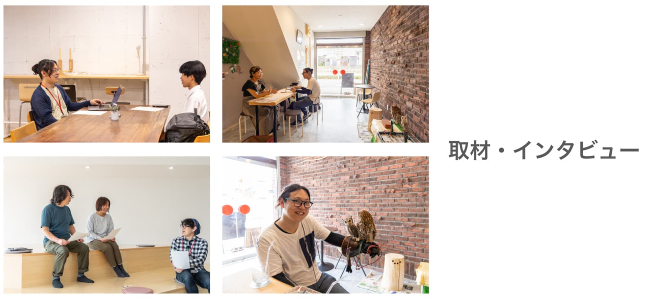 ー 3枚目は、「取材・インタビュー」と題したスライドです。