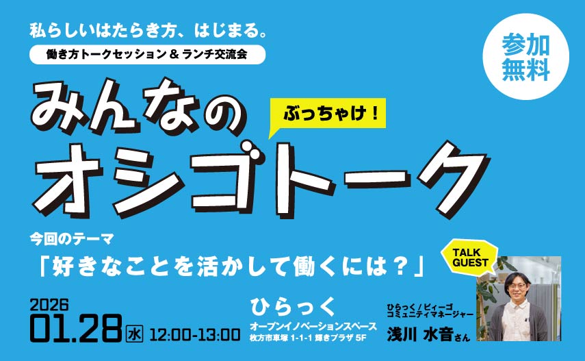 2026年1月28日(水)にオープンイノベーションスペースにて、「みんなのオシゴトークinひらっくVol.1〜好きなことを活かして働くには?」を開催しました。
