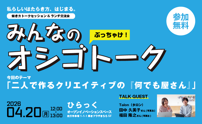 みんなのオシゴトークinひらっくVol.4〜二人で作るクリエイティブの「何でも屋さん」〜 4/20開催